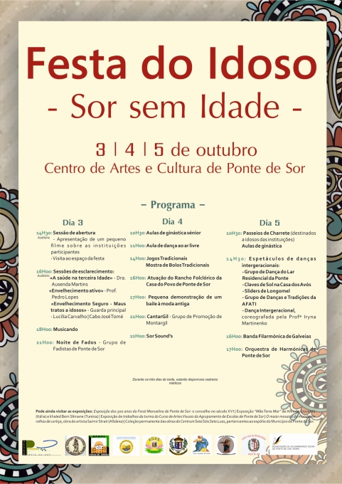 O Município de Ponte de Sor em parceria com as instituições do concelho que trabalham no âmbito da Terceira Idade promoveu, nos dias 3, 4 e 5 de outubro, a 1ª Festa do Idoso, denominada "Sor Sem ... +