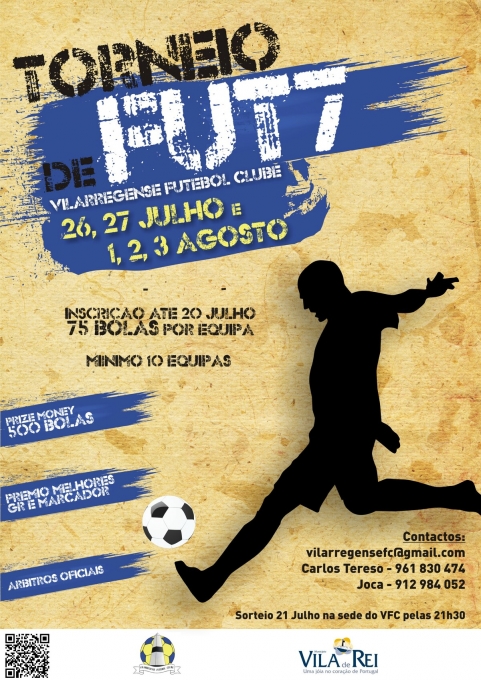 O Vilarregense F.C., com o apoio do Município de Vila de Rei, organiza, nos dias 26 e 27 de julho e 1 a 3 de agosto, o Torneio de Futebol de 7, integrado no programa desportivo da ... +