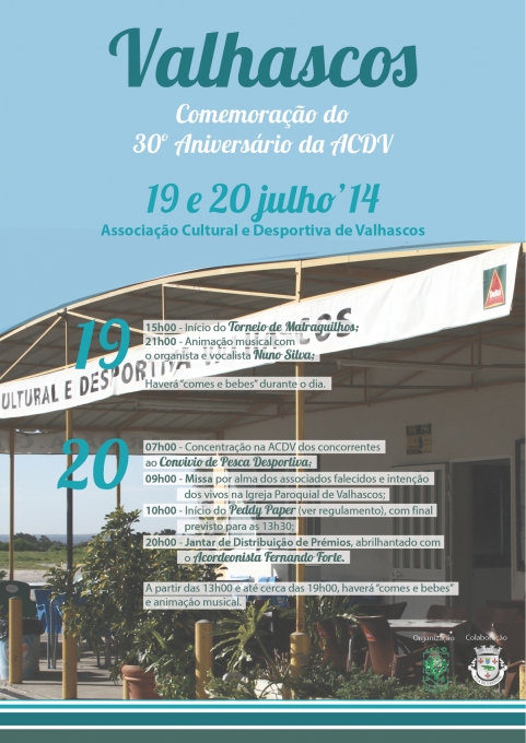 A Associação Cultural e Desportiva de Valhascos (ACDV), concelho de Sardoal, comemora o seu 30.º aniversário no próximo dia 20 de julho, promovendo um Convívio de Pesca Desportiva e um Peddy Paper.