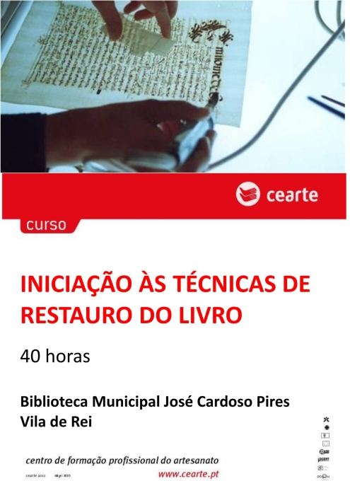 O CEARTE – Centro de Formação Profissional do Artesanato, em colaboração com a Biblioteca Municipal José Cardoso Pires, vai promover, de 4 a 19 de julho, o curso de Iniciação às Técnicas de Restauro do Livro.