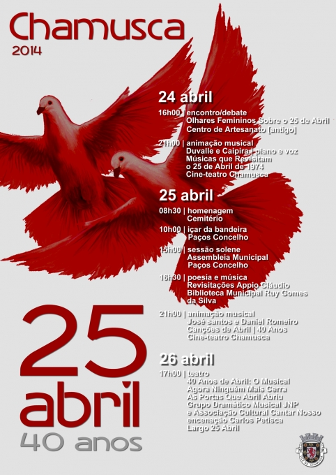 O Município de Chamusca junta-se às comemorações do 40.º aniversário do 25 de Abril com eventos evocativos que se estendem de 24 a 26 de Abril. Pela primeira vez no concelho da Chamusca será assinalado o dia ... +