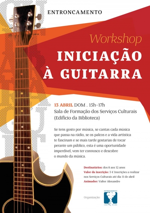 Promovido pela Câmara Municipal do Entroncamento vai decorrer, dia 13 de abril, um Workshop de iniciação de Guitarra.
