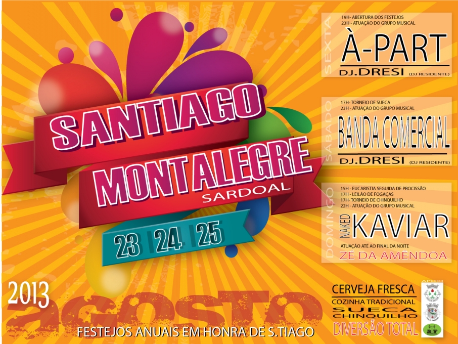 A Fábrica da Igreja da Freguesia de Santiago de Montalegre (Sardoal) vai promover os Festejos Anuais, em honra do Padroeiro (Santiago), nos dias 23, 24 e 25 de agosto.