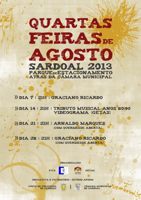 A Vila de Sardoal vai-se animar durante o mês de agosto, com ações que decorrem no Parque de Estacionamento (atrás da Câmara Municipal), todas as quartas-feiras, a partir das 21 horas.