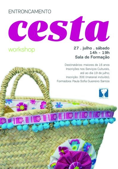 A Câmara Municipal do Entroncamento promove, dia 27 de julho, um workshop que consiste na decoração de uma cesta de verga, onde serão utilizadas diversas técnicas de aplicação de materiais decorativos. Aprenderão ainda a forrar a cesta.